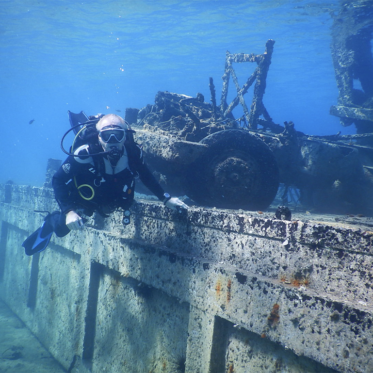 Join us for an exhilarating diving experience at the sea bottom of Chalki, tailored for both beginners and experienced divers. Explore two thrilling shipwrecks in one unforgettable journey. The crystal clear waters with clarity up to 40-60 meters, in combination with the morphology of the seabed and the variety of marine life, which includes a wide variety of foreign species from the Red Sea and the most beautiful species in the Mediterranean, make Chalki one of the best diving destinations in Greece.